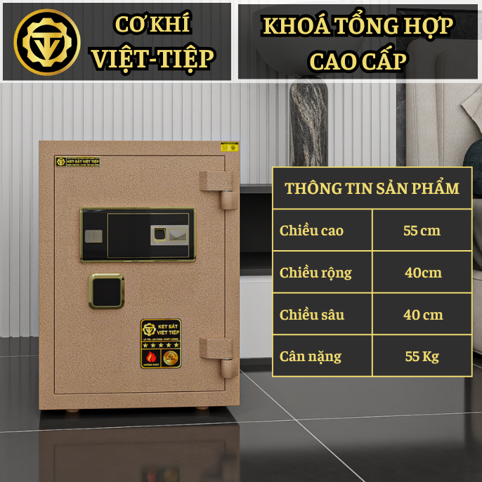 Két sắt mã K65-VTĐT là mẫu Két sắt Chính hãng Khoá Tổng Hợp bao gồm Khoá Vân Tay + Bảng số Điện Tử của Thương hiệu Cơ Khí Việt Tiệp.